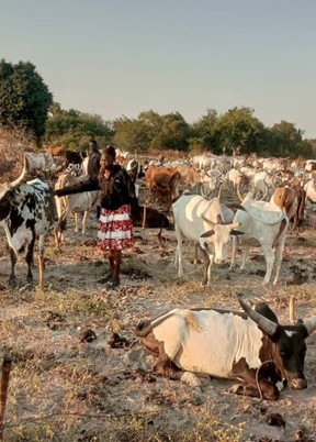 Caption – Pastoralist women tending cattle in Gogrial East County, South Sudan. Credit – Chol Peter Bak.